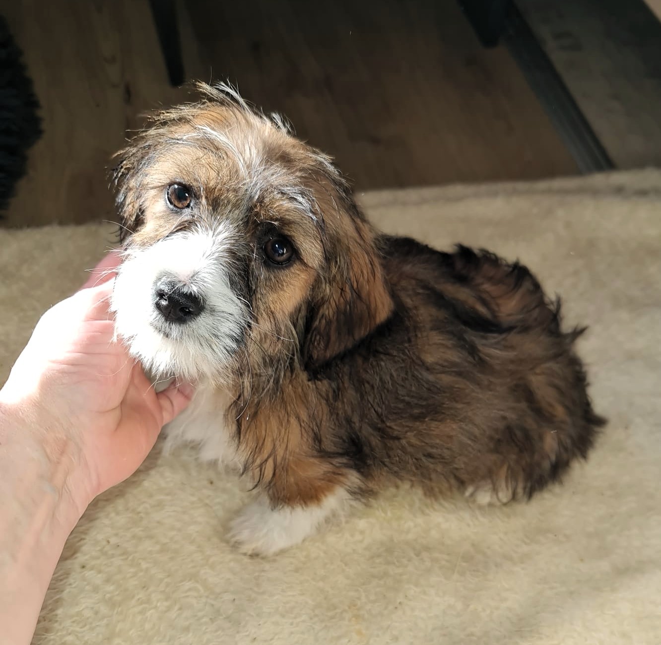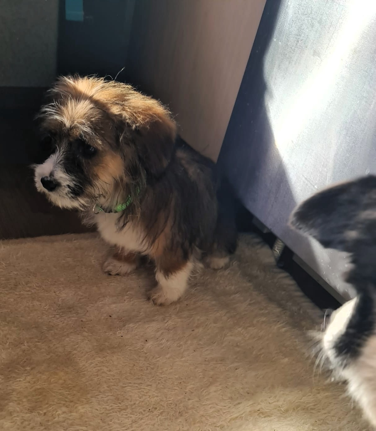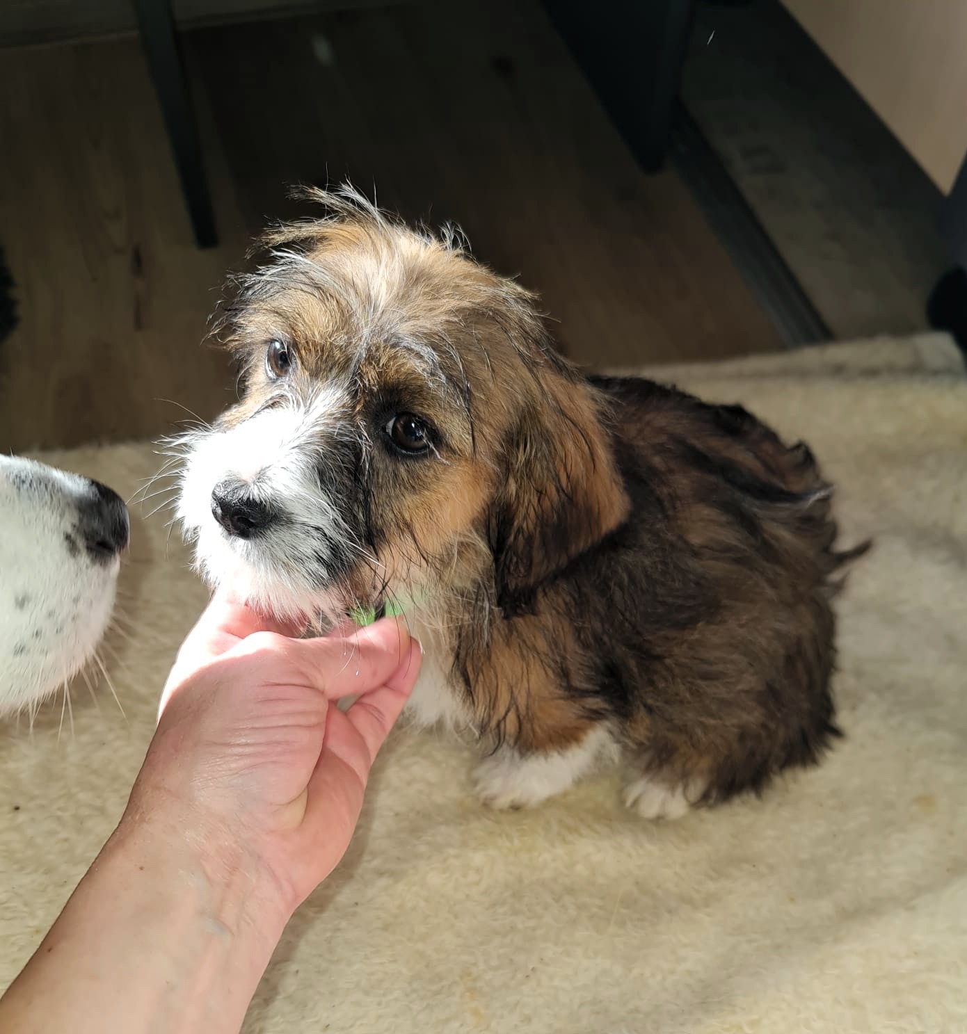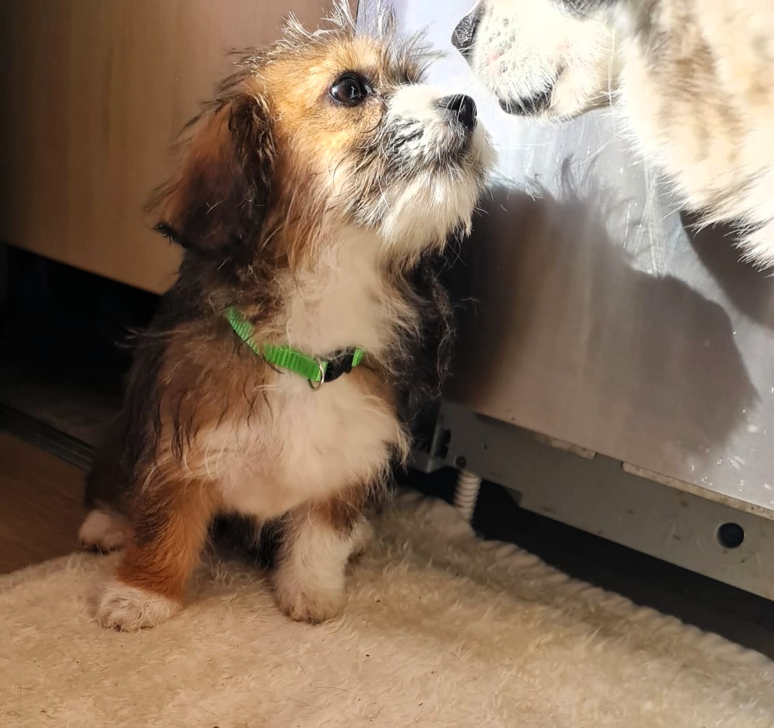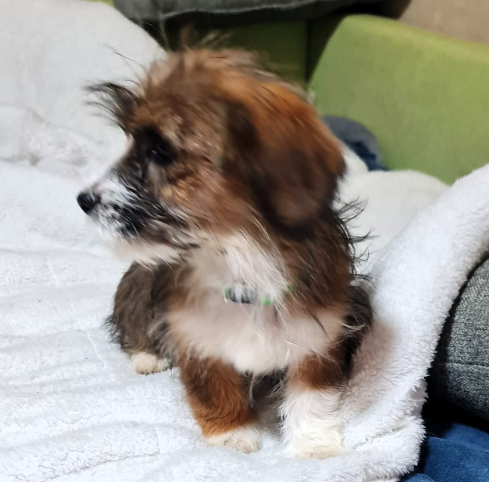 Die Angaben zur Größe und Gewicht gelten, wenn der Hund ausgewachsen ist. Aktuell 2 kg schwer und 20 cm groß.